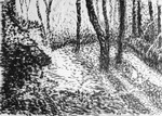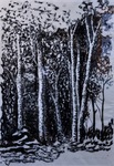 Grote tekeningen van bos en bosschages in houtskool